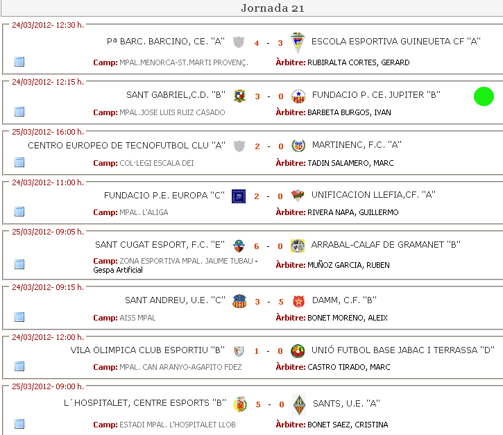 | 16 | ARRABAL-CALAF DE GRAMANET "B" | 1 | 22 | 0 | 1 | 21 | 10 | 140 | 0 |